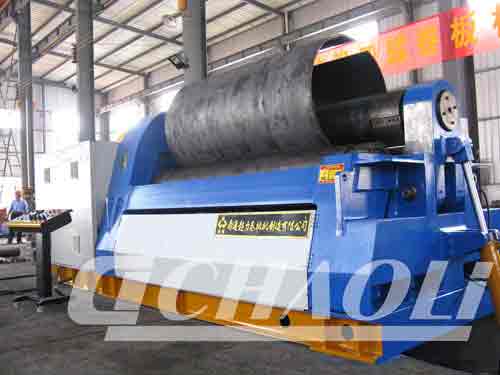 四輥卷板機通過絲桿絲母蝸輪蝸桿傳動;四輥卷板機的優點是板材端部預彎及卷圓可以在同一臺設備上進行。